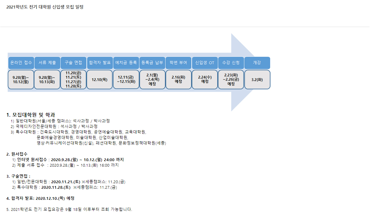 일반/전문대학원 : 2020.11.21.(토) ※세종캠퍼스: 11.20.(금)
